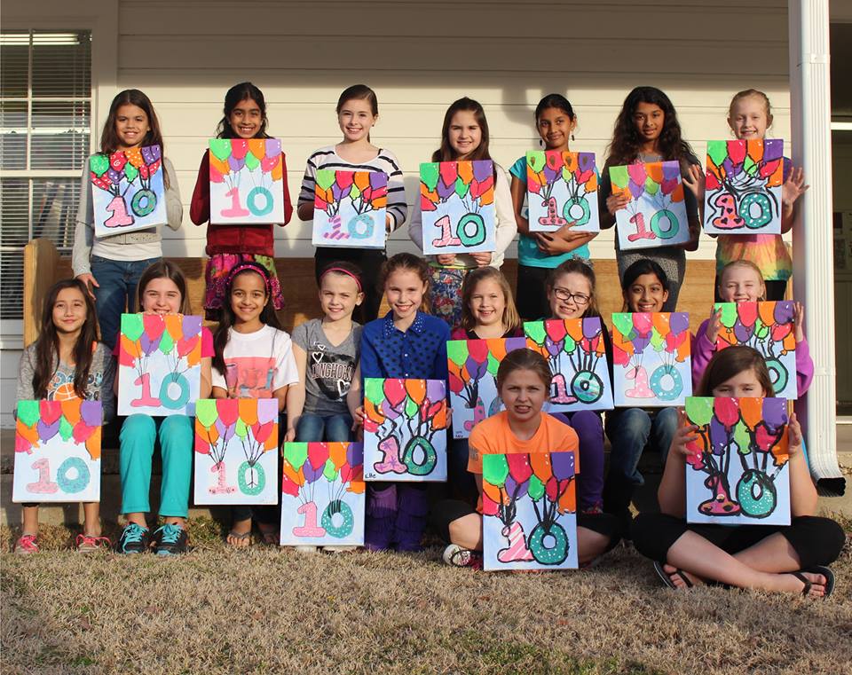 Day of the party: We set up the supplies (aprons, canvas, paint, brushes, etc.). The guests and birthday child will be instructed how to complete a unique piece of art. Some time is slotted to have a celebration. We end with a group picture.